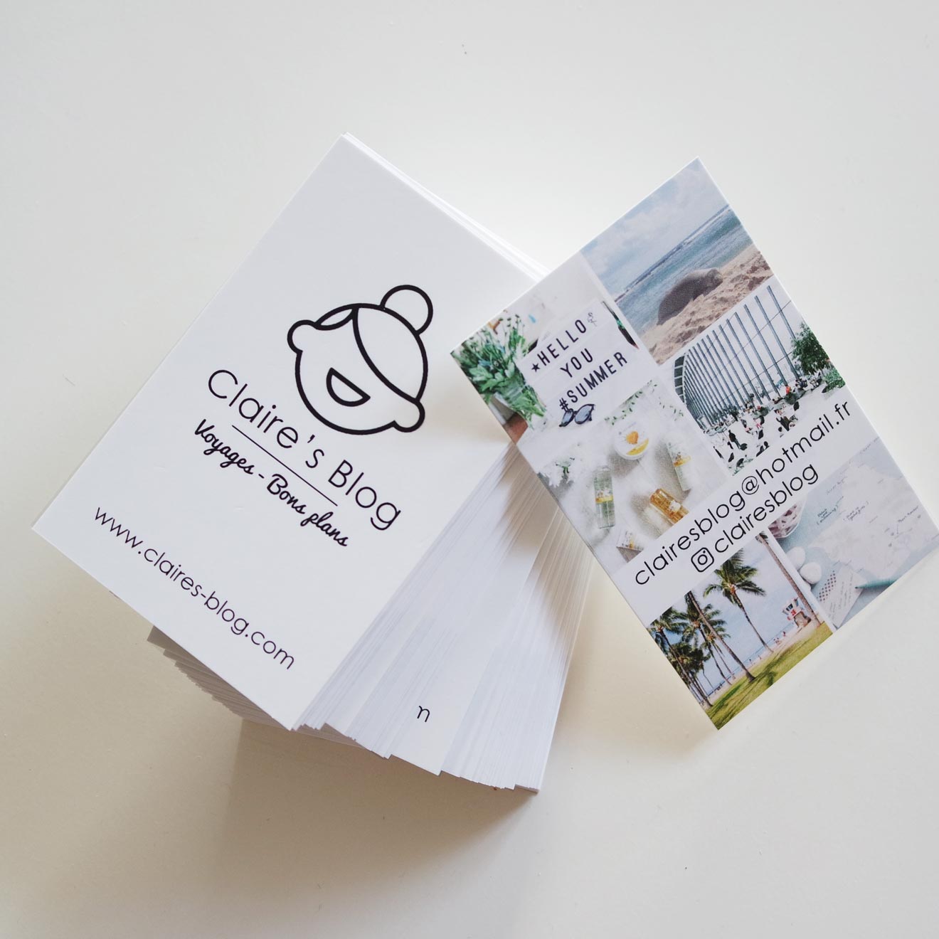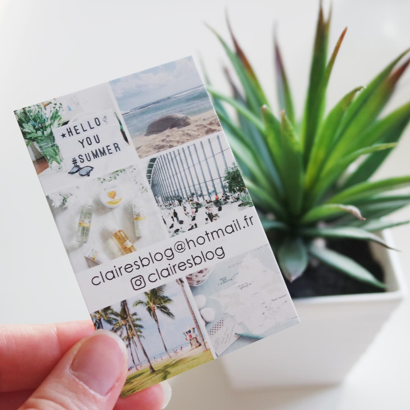 Ça peut paraître anodin mais c’est l’accessoire qui peut faire toute la différence. Ça professionnalise ce que je fais et c’est un peu un Ice Breaker comme on dit dans le métier. Quand vous êtes à une soirée influenceuses, quand vous êtes invitée à une exposition ou quand vous rencontrez des agences ou d’autres blogueuses, c’est toujours plus facile de donner votre carte que d’épeler l’adresse de votre blog ou de vos réseaux sociaux (« alors Claire-comme-mon-prénom, tiret du 6, blog B-L-O-G .com »). Et puis, rien de plus embarrassant quand on vous tend une carte de visite mais que vous ne pouvez pas faire de même!