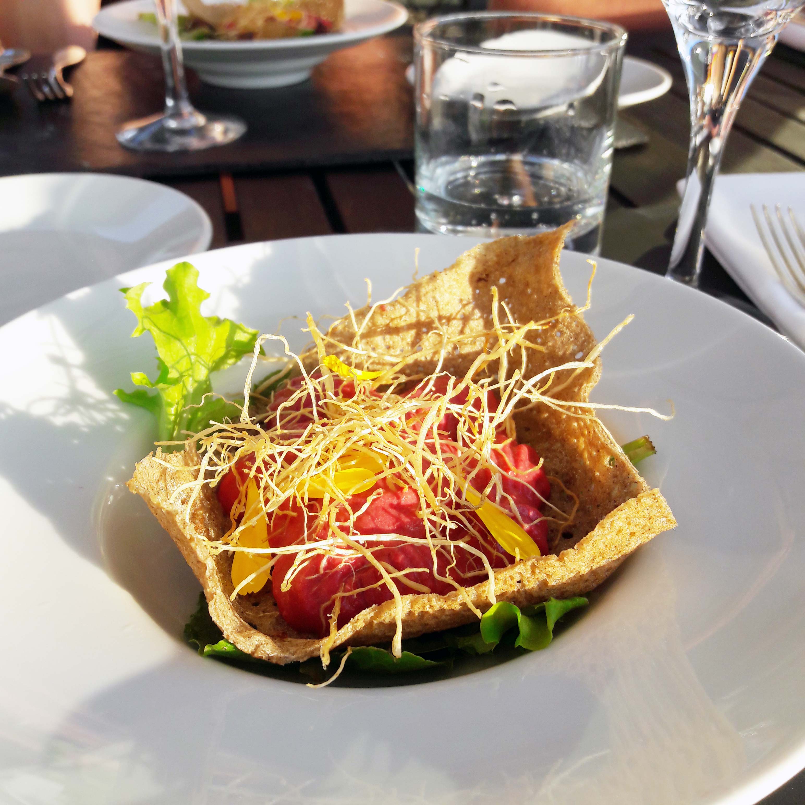 Un bel hôtel ne serait pas complet sans un bon restaurant. Les Jardins Sauvages, dont Gilles le Galles est le chef, est un restaurant bio.