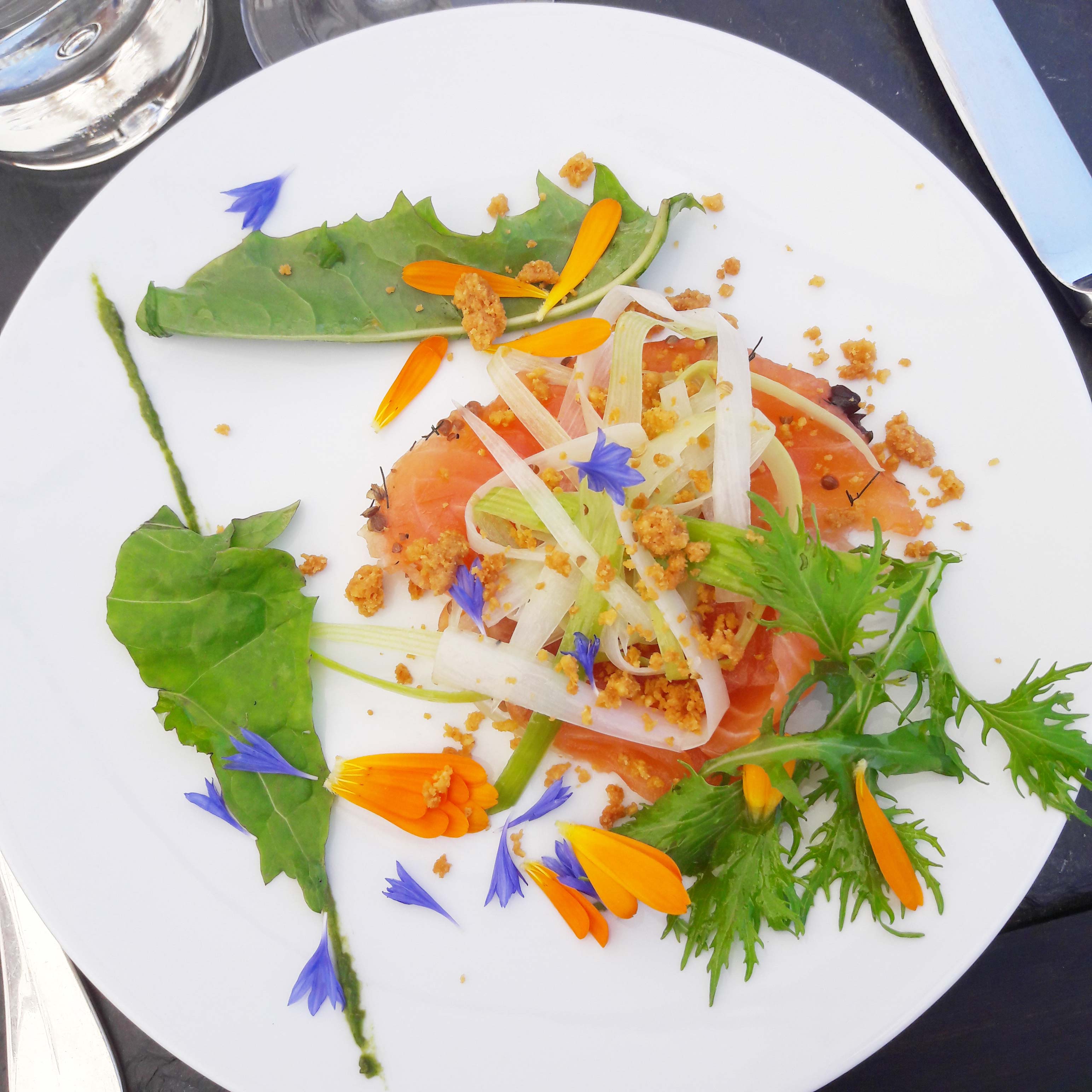 Le potager des Jardins Sauvages se trouve juste en face du restaurant. Alors pourquoi pas y faire une petite balade pour découvrir les ingrédients que vous retrouverez ensuite dans votre assiette ? Si vous n’avez pas la main verte comme moi, pas de problème: tous les noms sont indiqués à l’aide de petits écriteaux d’ardoise.