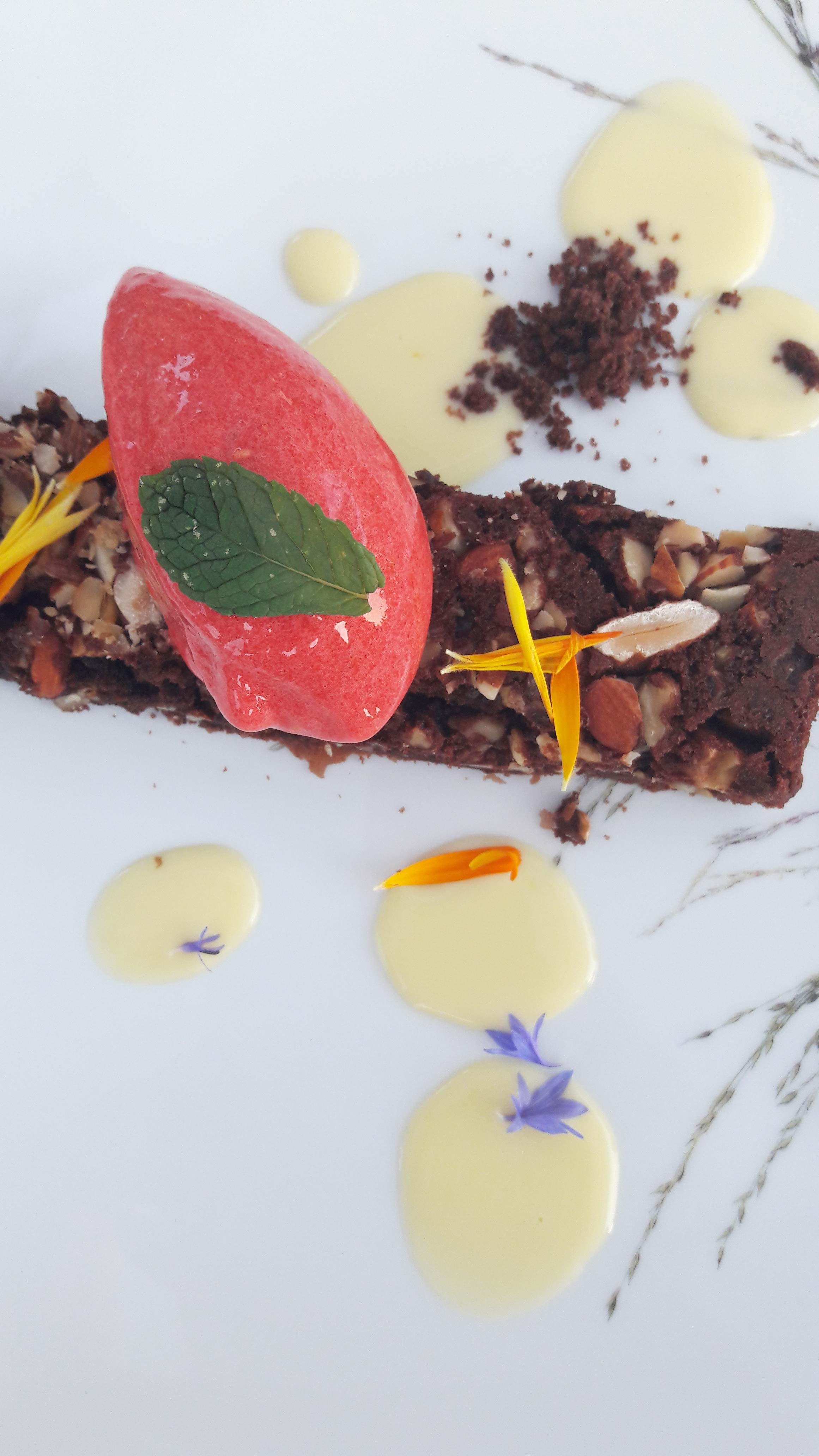Son objectif: proposer des plats de saisons originaux à partir de produits issus des communes voisines. Les agriculteurs ne sont pas à plus de 60 kms du restaurant, sauf pour les fruits de mer et les poissons (mais qu’on se le dise, en Bretagne on n’est jamais loin de mer)