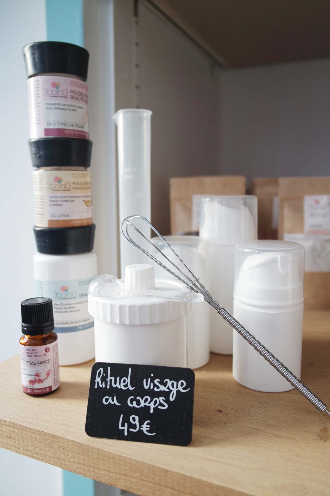 La boutique 3 POINT 3 regroupe toutes nos attentes ! En plus de proposer des produits cosmétiques naturels venus de Bretagne, elle propose des ateliers pour les fabriquer !