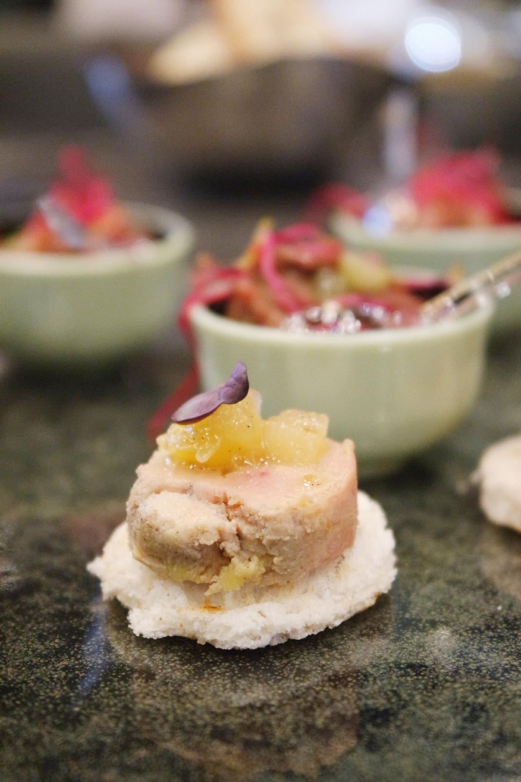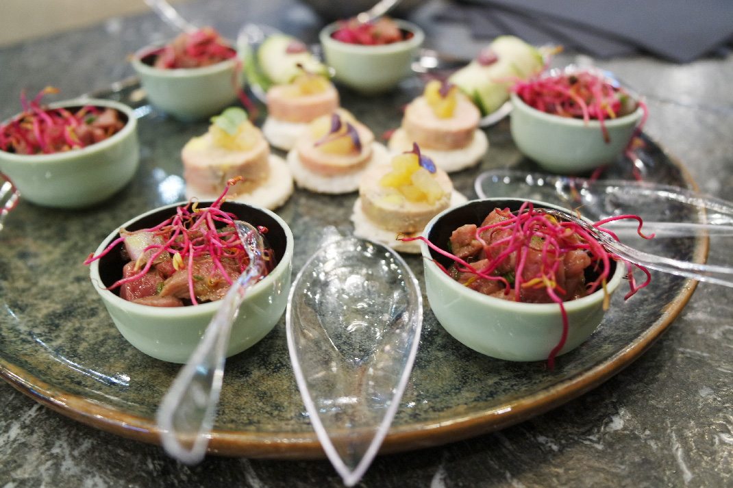 Nous avions, pour l’inauguration du restaurant, un menu dégustation spécial. Mais l’objectif est de vous donner un aperçu de ce que vous pourrez retrouver dans la carte tous les jours ! Les plats sont confectionnés à partir de produits frais et la maison ne veut rien cacher aux clients. C’est d’ailleurs pour cela que les plats sont préparés sous leurs yeux, derrière le bar !