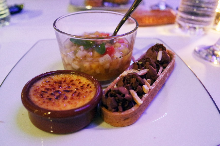 Une fois tout le monde embarqué, le spectacle culinaire peut commencer. Service à table pour ce soir. Nous aurons un menu Entrée / Plat / Dessert avec un concept innovant : Finger Food (et une qualité de réalisation à faire rougir les plus grands restaus de Paris)