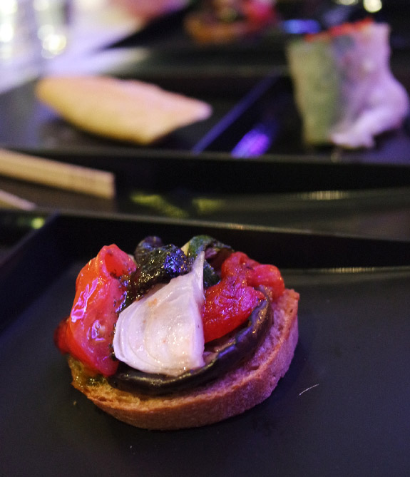 Canapé de poivrons, olives, aubergines