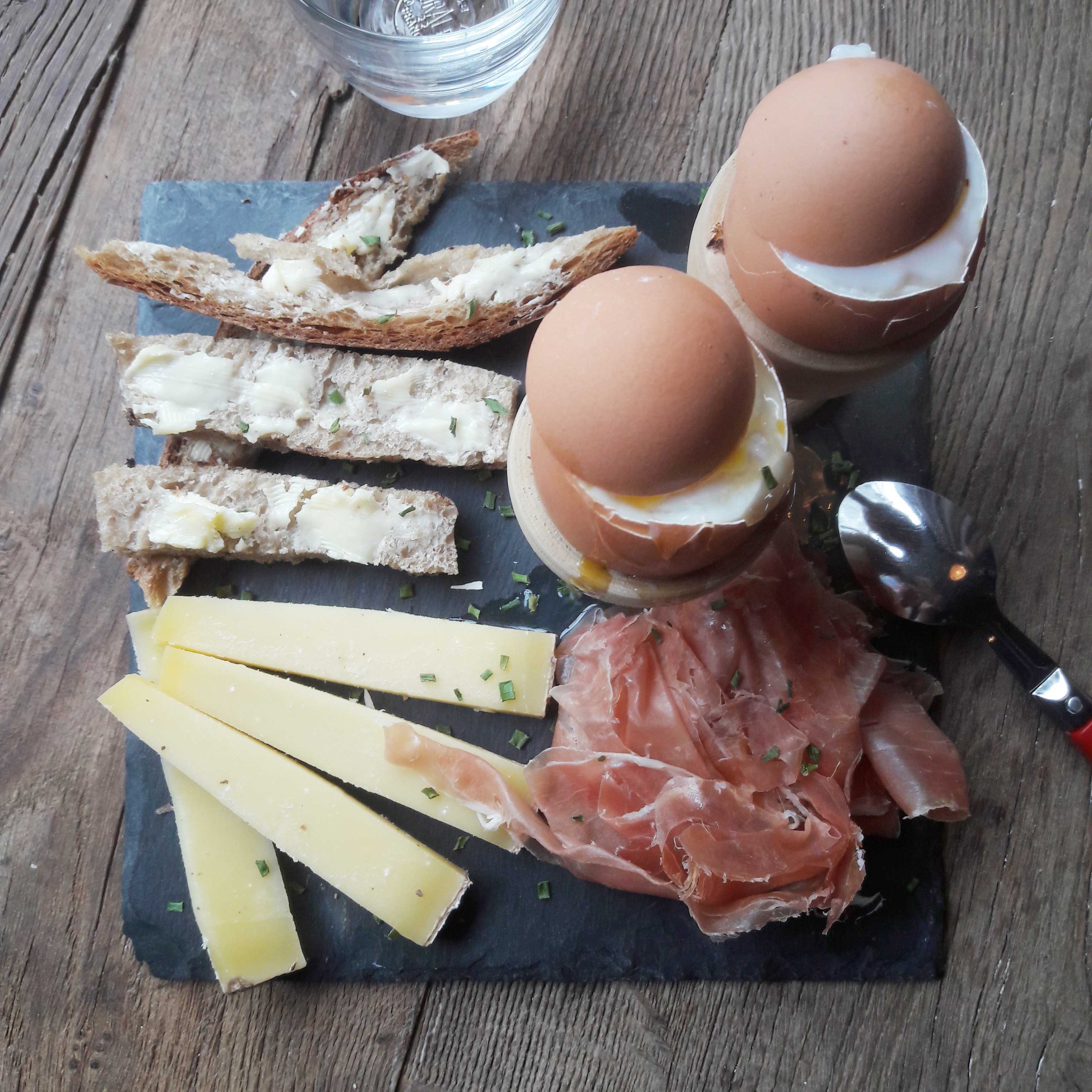Oeuf poché, risotto de pâtes, de la bonne charcuterie et de bons fromages, et toujours à la carte un dessert à base de légumes ! Et toujours des produits de saisons et en privilégiant le local !