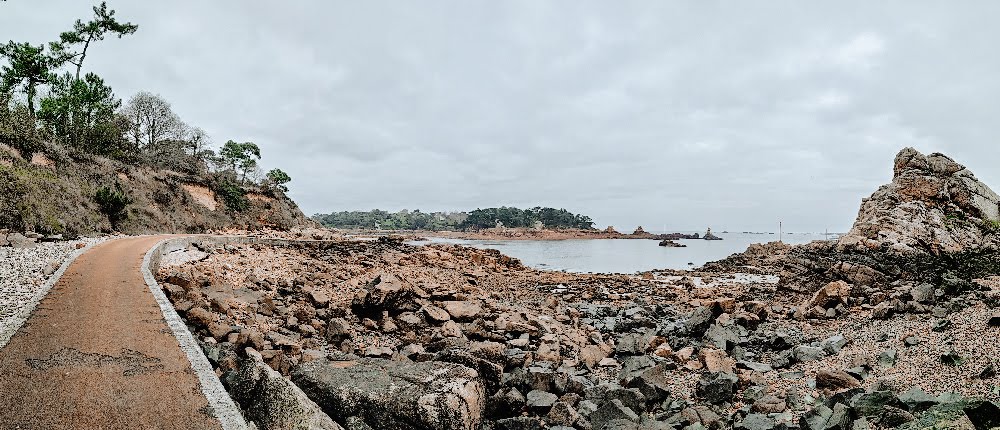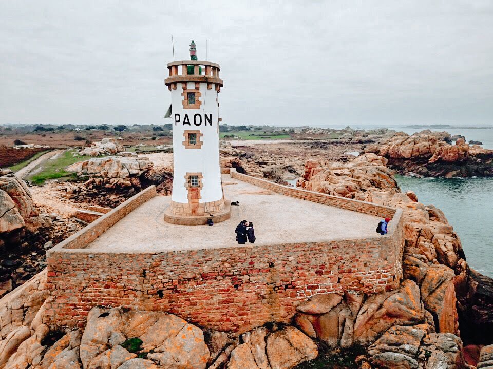 C’est là que nous avons élu domicile pour faire la plupart de nos photos et de nos images prises de drone. La vue est superbe. On se rend rapidement compte que l’on n’est pas loin de la côte de Granit Rose quand on regarde la couleur qu’ont les roches. Le soleil a mis du temps à pointer le bout de son nez mais la lumière nous a tout de même permis de profiter de l’eau turquoise des alentours.