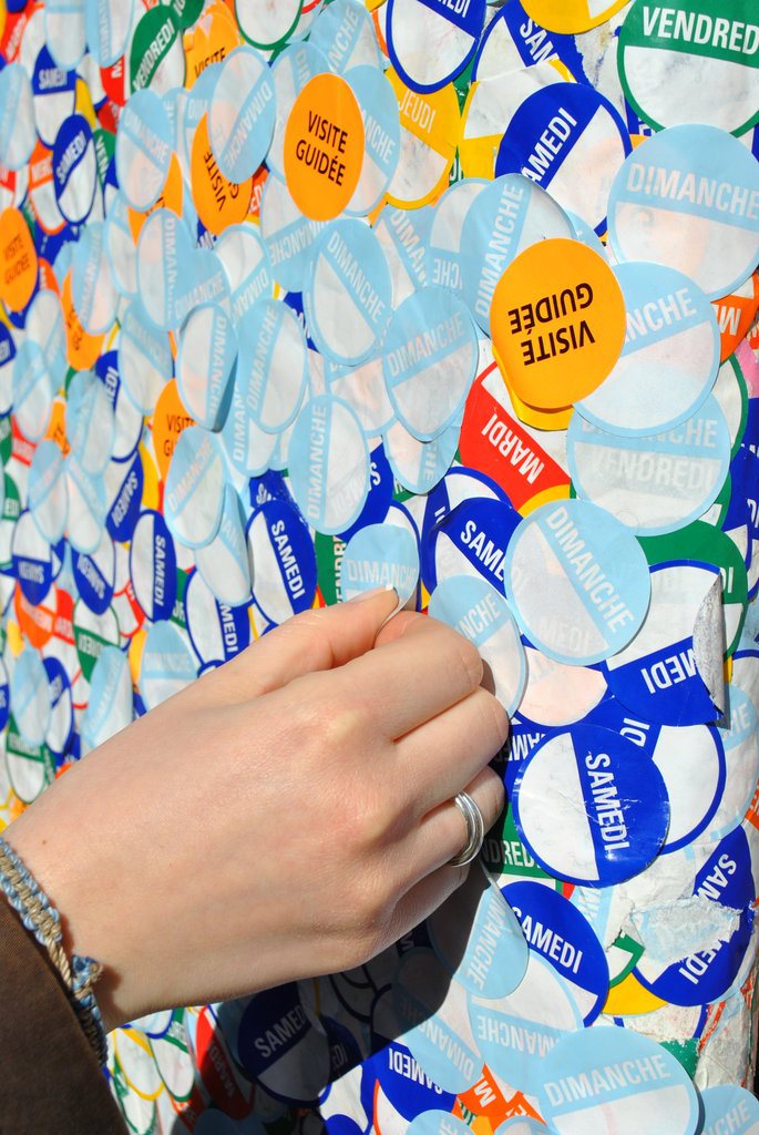 En arrivant à la piscine de Roubaix on remarque que le bâtiment est couvert d’autocollants. Ce sont en fait les tickets d’entrée pour le musée.