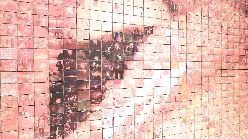 Nous sommes passés un peu par hasard dans cette rue. Ce qui est bien avec Barcelone c’est qu’on ne sait jamais ce qu’on va trouver au prochain coin de la rue. C’était un peu le cas cette fois-ci. Cette oeuvre, en plus d’être esthétique, a une histoire très belle. L’artiste, Joan Fontcuberta, a voulu montrer que chaque histoire commence par un baiser. L’image, constituée de centaines de petites photos, représente un baiser. C’est le journal El Periodico qui a demandé à ses lecteurs de participer à cette oeuvre gigantesque en envoyant une photo qui caractérise pour eux un moment de liberté.