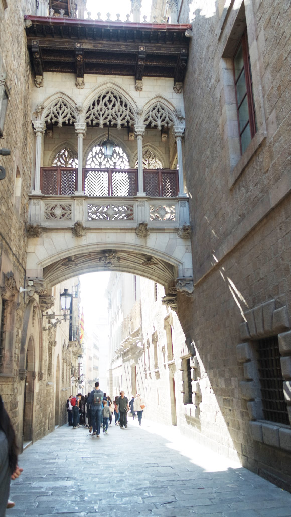 C’est sur cette place que l’on retrouve notamment le Parlement de Barcelone mais aussi, dans une des rues adjacentes le célèbre pont suspendu. Ça m’a un peu fait penser au pont des soupirs de Venise (bon ok tous les ponts suspendus me font penser au pont des soupirs) .