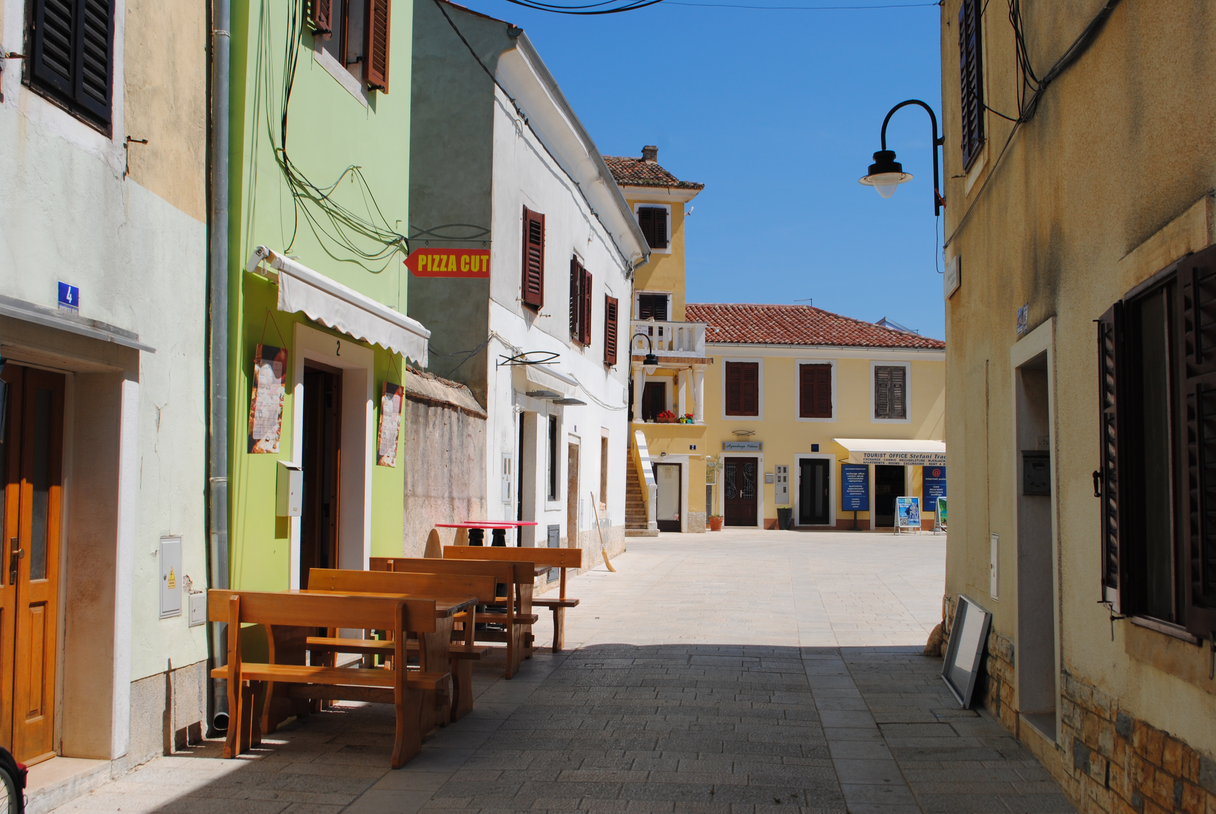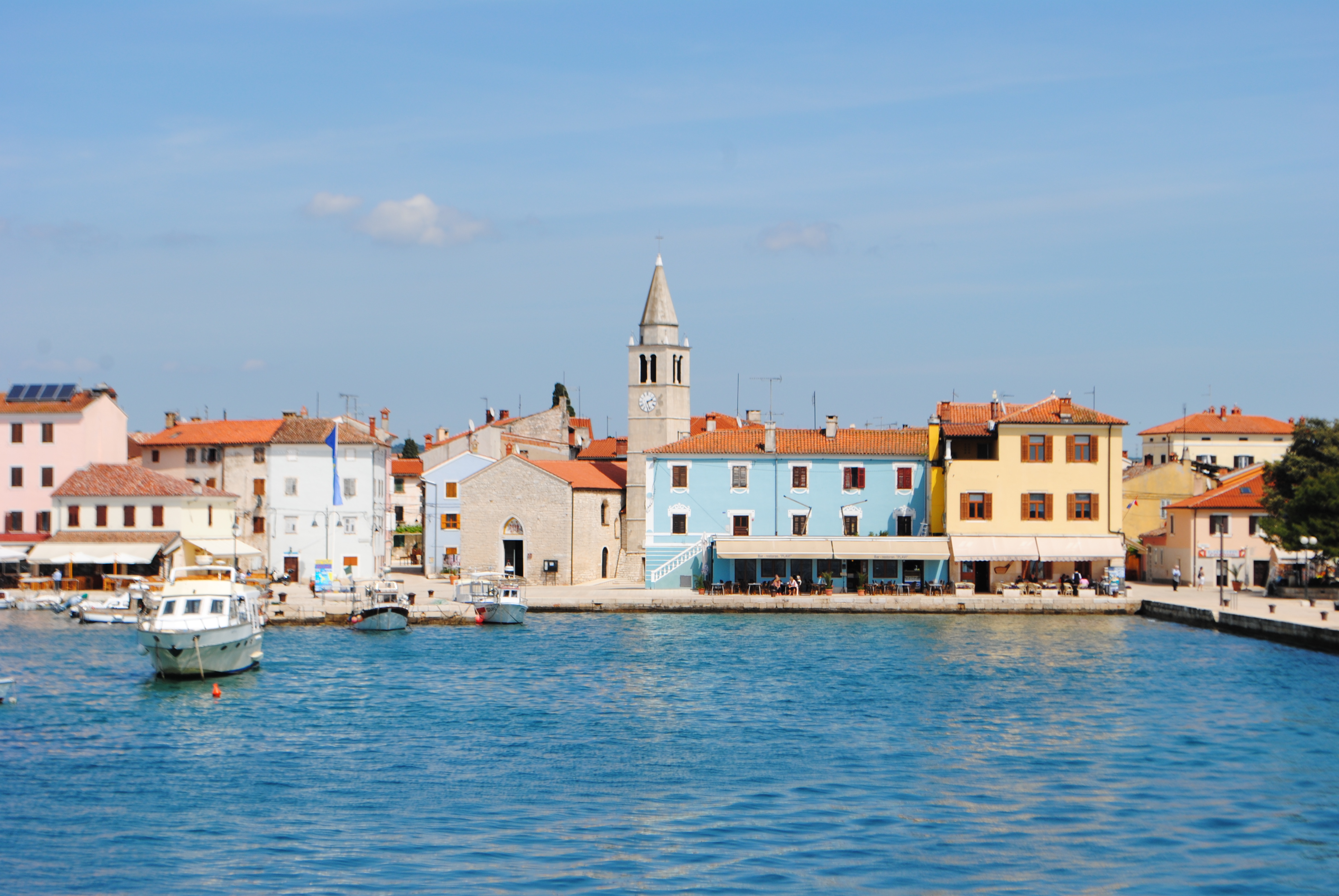 Nous sommes partis du centre de Pula et avons pris le bus direction Fazana (environ 30 minutes si mes souvenirs sont bons). Ne passez pas à côté de cette petite ville très colorée ! Je vous conseille de déjeuner sur le port car il y a peu d’endroits pour se restaurer une fois sur l’île.