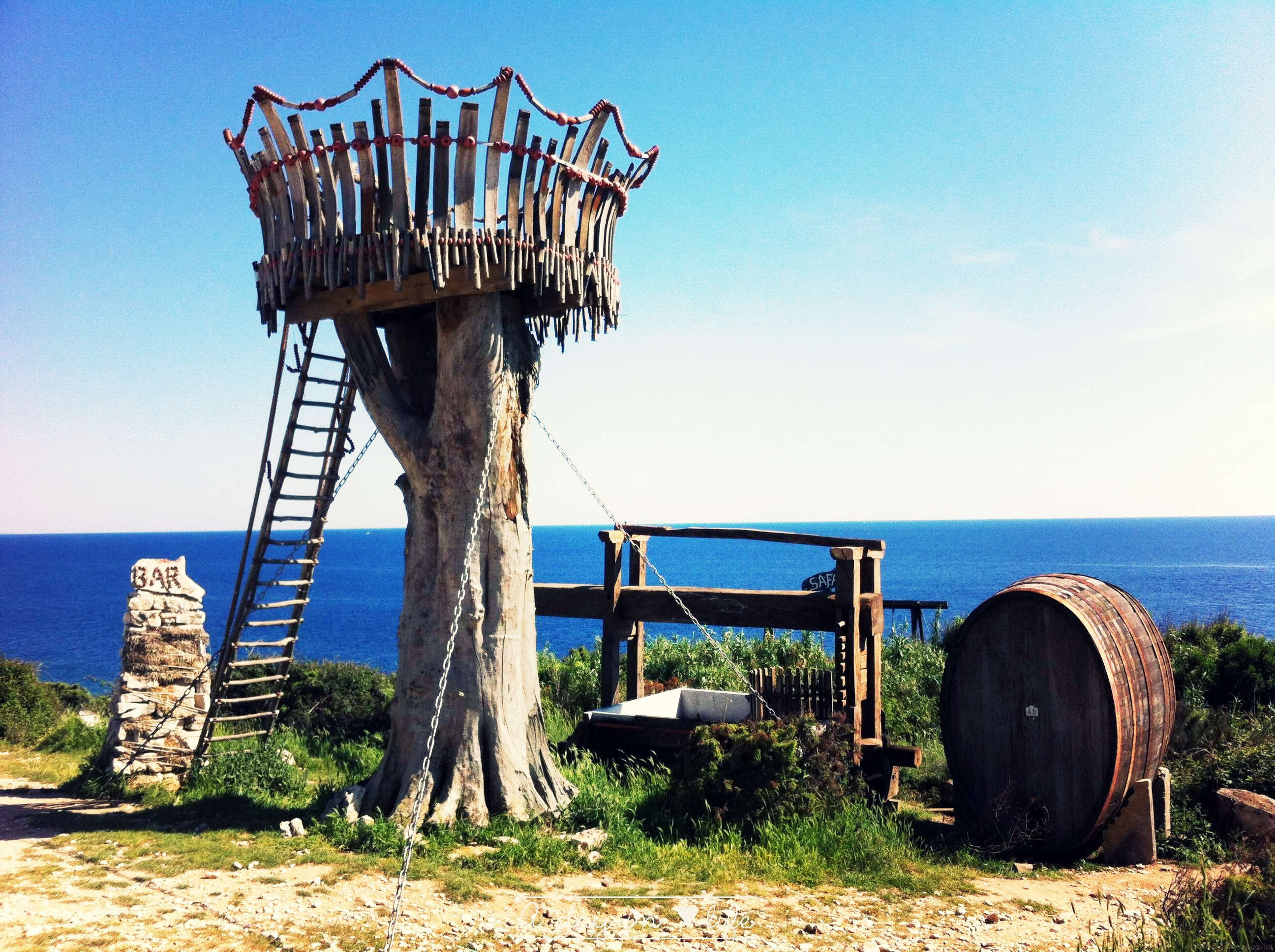 Si vous allez en Croatie près de Premantura, il FAUT vous arrêter au Safari Bar. C’est en voyant 2 Harley (étonnant sachant que ce sont les seules personnes que l’on a croisé pendant notre balade à vélo) qu’on s’est dit qu’elles devaient revenir d’un endroit sympa (faire tout ce chemin en moto, fallait le faire). Et le détour en valait le coup ! C’est sûrement le bar le plus fou que j’ai fait. On commence à s’enfoncer dans la savane sans trop savoir si c’est le bon chemin.